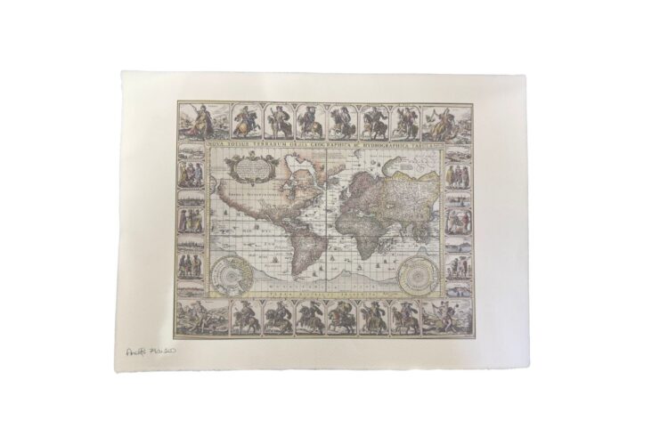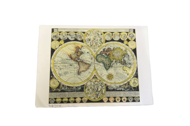 Litografia Antica del Mondo Geografica e Idrografica – Stampa su Carta 100% Cotone a Tiratura Limitata