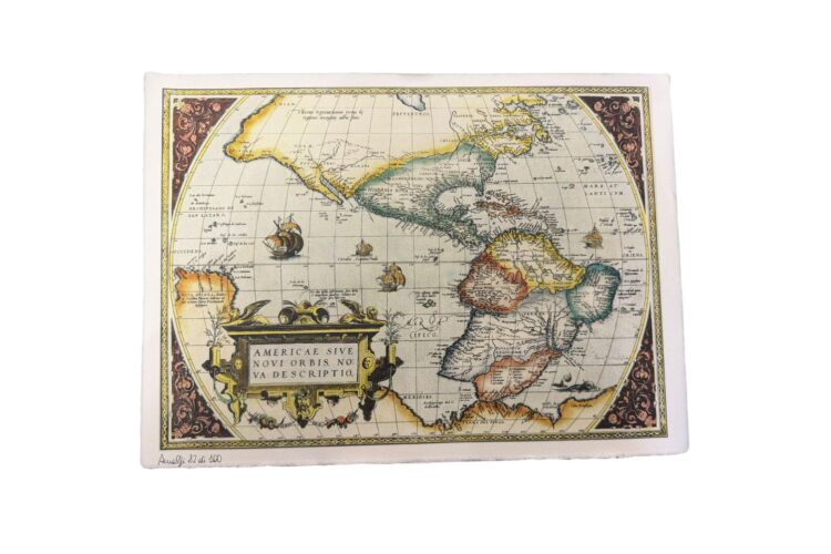 Mappa Antica “America sive Novi Orbis Nova Descriptio” su Carta 100% Cotone – Tiratura Limitata
