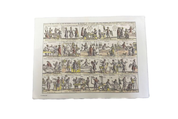 Litografia storica raffigurante il “Gioco dei mestieri – a chi va bene e a chi va male”